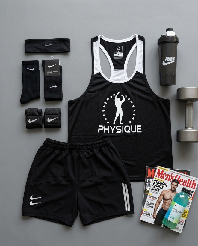 پکیج کد E1948 شامل رکابی قهرمانی + شلوارک + جوراب ساقدار + شیکر دو تیکه + مچ بند چسب نانو + هدبند با تم سفید مشکی 🔥🤍
